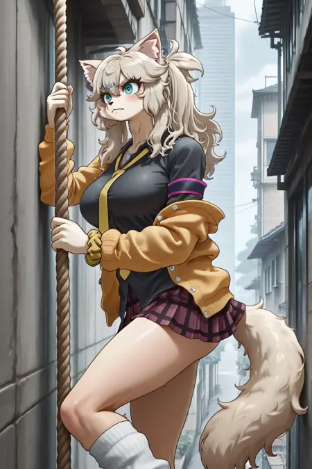 animal ears, animal nose, animal ear fluff, animal feet, animal hands, five fingers, fluffy legs, cat tail,
