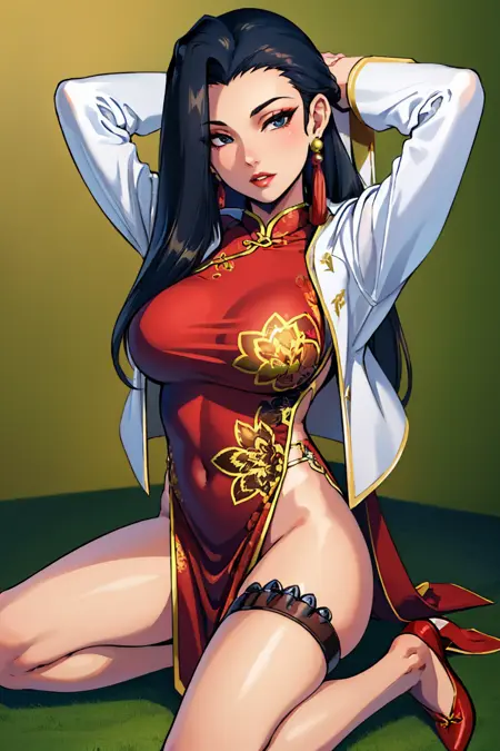 Default Outfit: jacket, chinese clothes, china dress, thigh strap, earrings