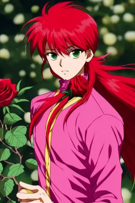 long hair,red hair,green eyes,Pink Martial Arts Costume