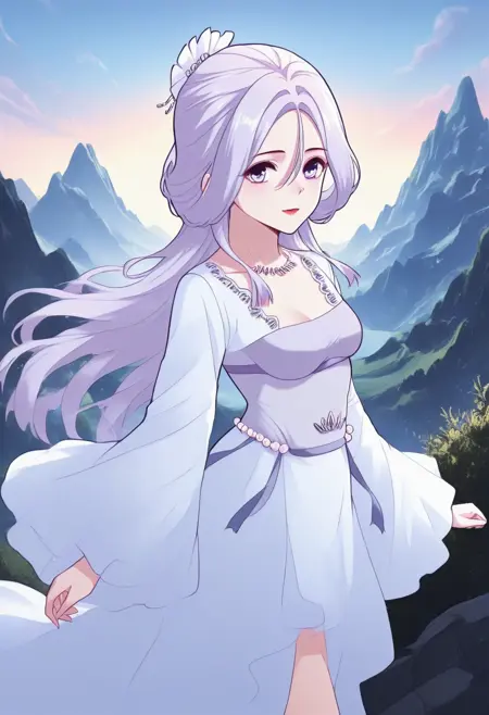 | Trained Words | Chu_Qingcheng_No_Mask_IL,1girl,long purple hair,wavy hair,Soft wavy strands,hair ornament,parted bangs,purple eyes,hair between eyes,necklace,medium breasts,no mask,elegant outfit,white dress,layered dress,pearl accents,high slit dress,wide sleeves,flowy fabric,ornamental belt,waist gems,Copied! Chu_Qingcheng_Mask_IL, 1girl, long purple hair, wavy hair, Soft wavy strands, hair ornament, parted bangs, purple eyes, hair between eyes, necklace, medium breasts, face veil, soft light purple veil, elegant outfit, white dress, layered dress, pearl accents, high slit dress, wide sleeves, flowy fabric, ornamental belt, waist gems,Copied! |