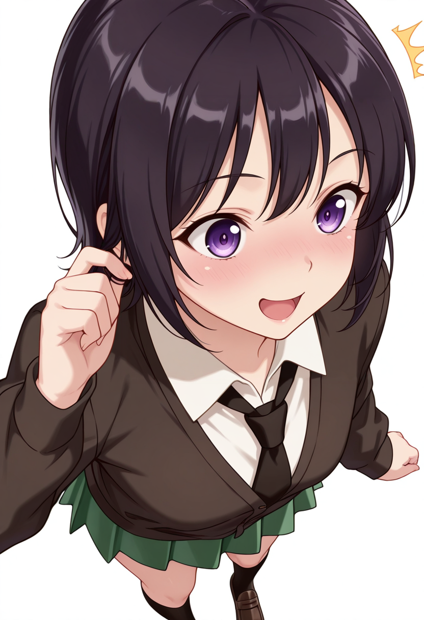 yozora_cnr, 1girl, black hair, long hair, purple eyes,