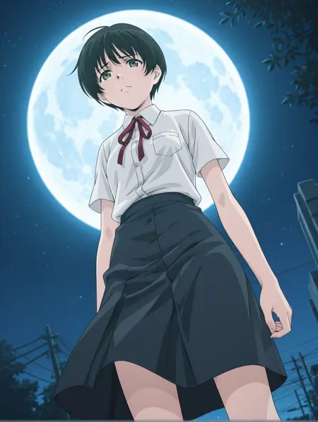 fuj1n0b3, 흰색 셔츠, 파란색 스커트