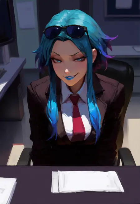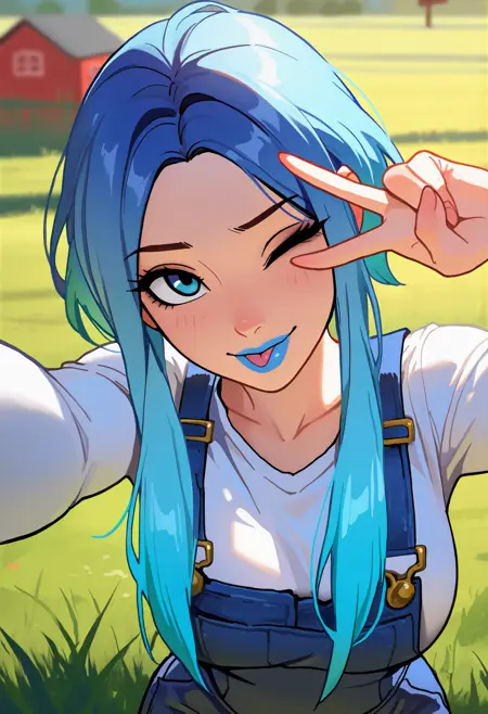 외모 태그: 파란 머리카락, 옆머리, 립스틱, 파란 입술, 회색 눈, 팔 문신, 파란 문신,