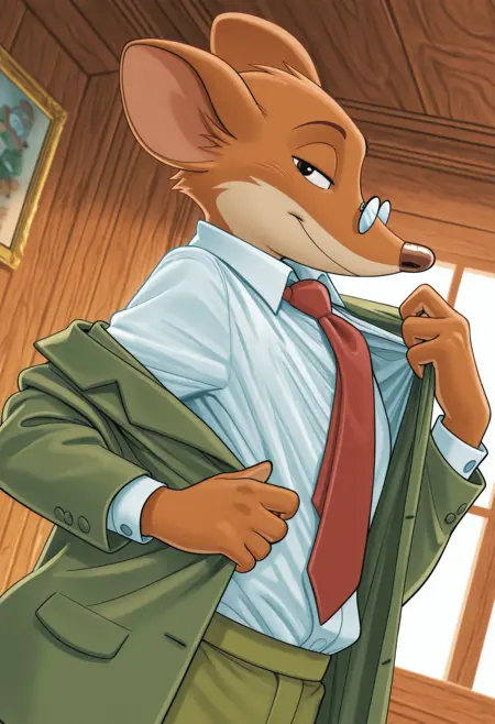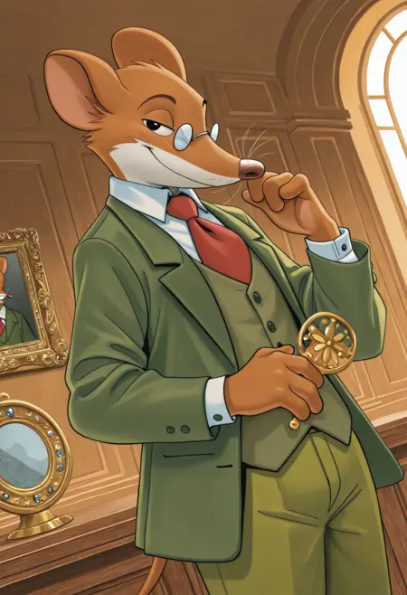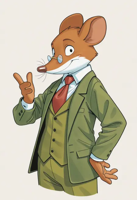 Illustrious: best quality, amazing quality, very aesthetic, absurdres, newest, geronimo_stilton, furry male, furry, solo, necktie, formal, pince-nez, looking at viewer, ...your tags...