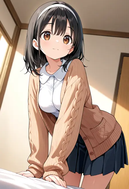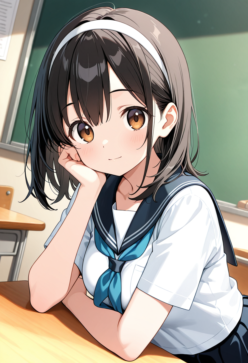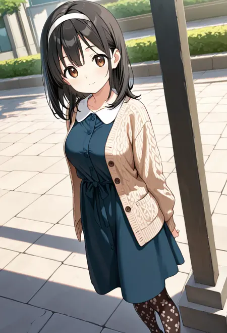 OCAyumi, 검은 머리, 중간 길이 머리, 갈색 눈, 헤어밴드, 흰 헤어밴드, 중간 크기 가슴