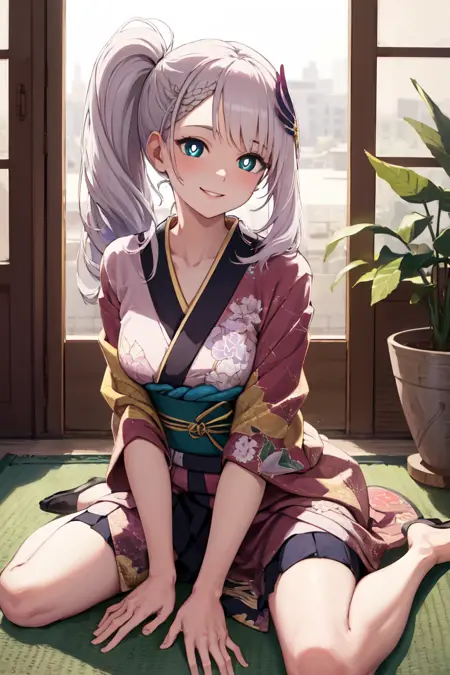 髪型には「ロングヘア、サイドポニーテール、フェザーのヘアアレンジ」を使用してください。