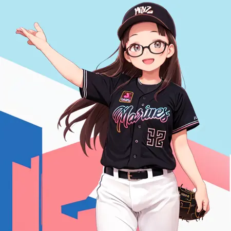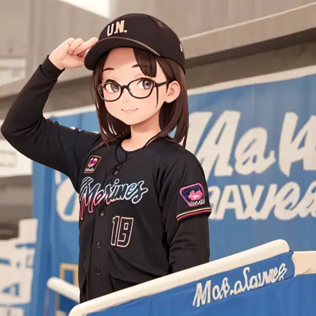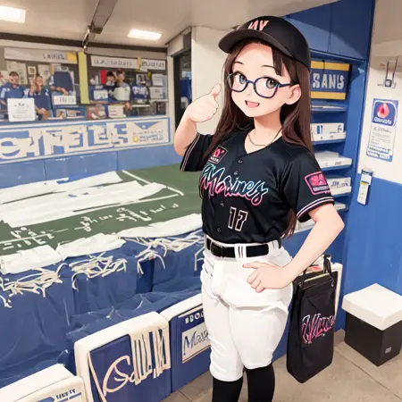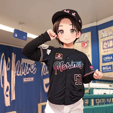 chibalotteV, baseball cap, black shirt, baseball uniform,