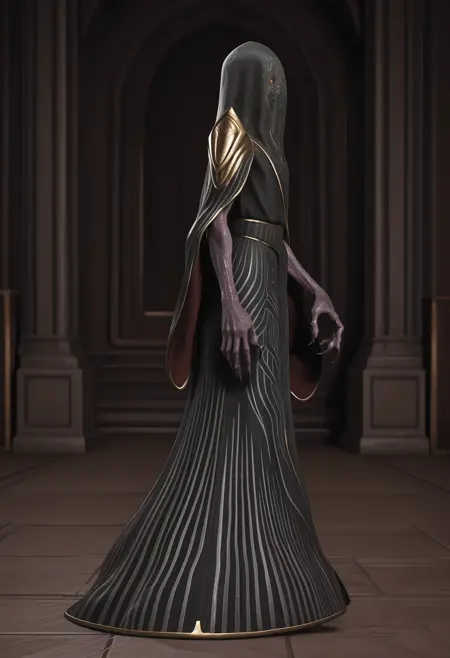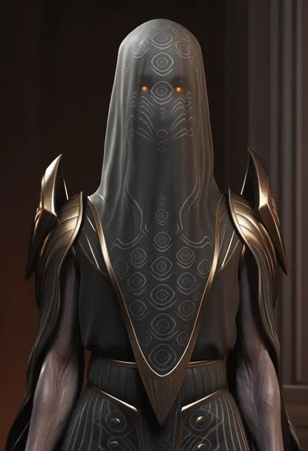 w1tilf, 无面, 橙色眼睛, 发光眼睛, 爪子, 长袍, 肩甲, 手镯, 面纱