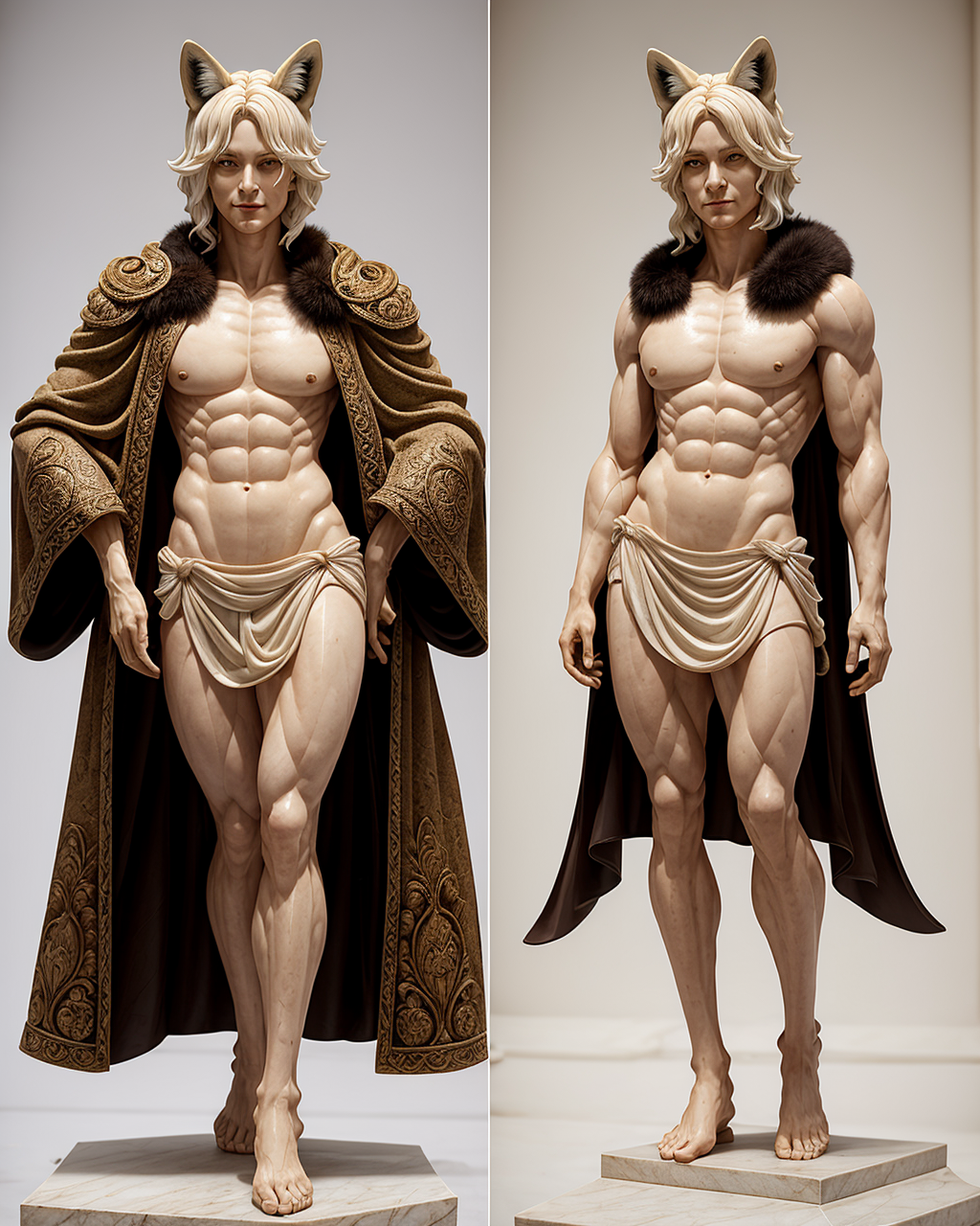 不知道為什麼權重越重除了越來越像大理石雕像外,衣服越來越少