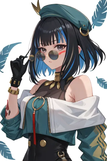 The trigger word is tlaloc_fgo, and the recommended tags are best quality, masterpiece, highres, solo, {tlaloc_fgo:1.15}, bangs, black_hair, blue_hair, multicolored_hair, long_hair, hat, breasts, jewelry, streaked_hair, black_eyes.