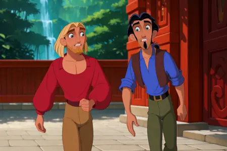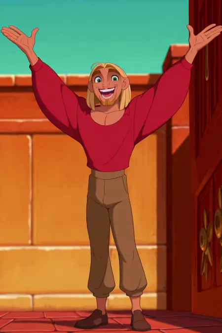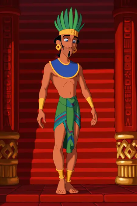 赤いイヤリング、紫の外側のカラー、紫の腰布、トライバル、頭飾り、ゴールドのブレスレット、ゴールドのアンクレット、