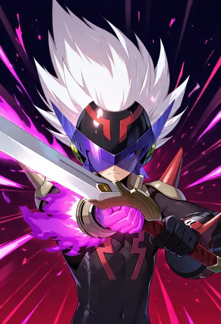 또한, red eyes, no visor, no eyewear 태그를 사용하고 부정 프롬프트에 visor를 추가하면 그의 비저를 끌 수 있습니다. 비록 이 비저는 세상에서 가장 멋진 비저 중 하나이지만요!