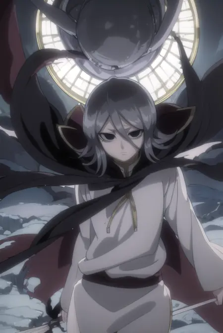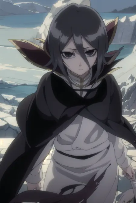 rukia kuchiki, default rukia, black hair, hair between eyes, (purple eyes:1.1),