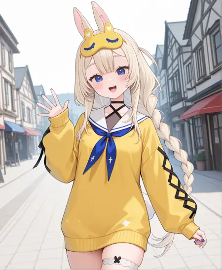 PROMPTS : yenko, dress, animal ears, long hair, blue eyes, blonde hair, black head ribbon, bunny tail, bunny ears,