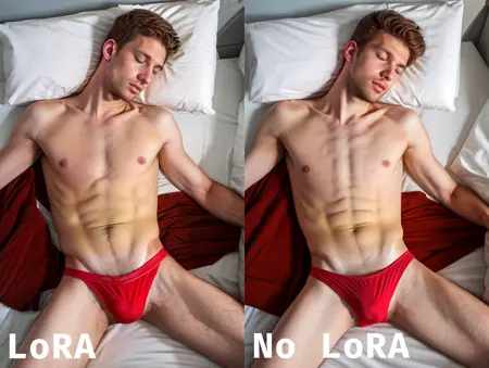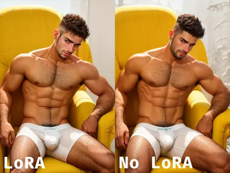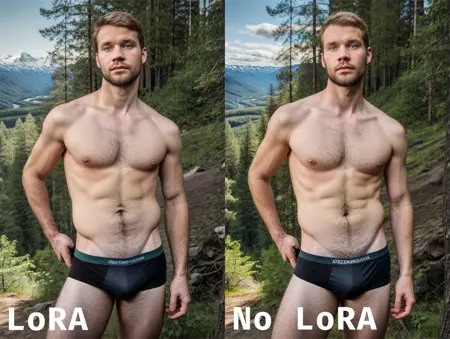 This LoRA help to create softer, less, visible abs. You can still see them, but only just. Those abs that don't make the guy look like he was chiselled out of marble. It softens their torsos when the lines would otherwise be too harsh.