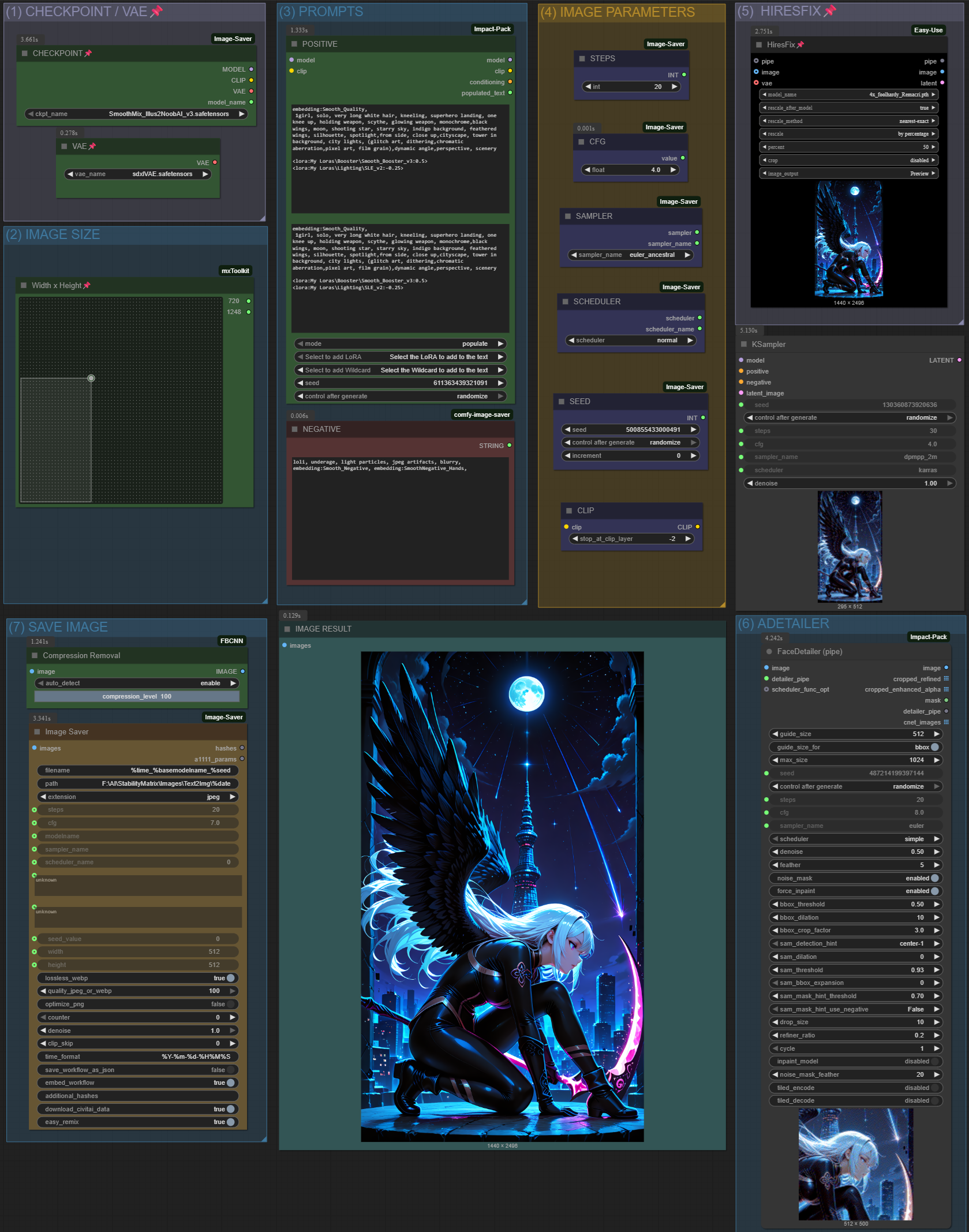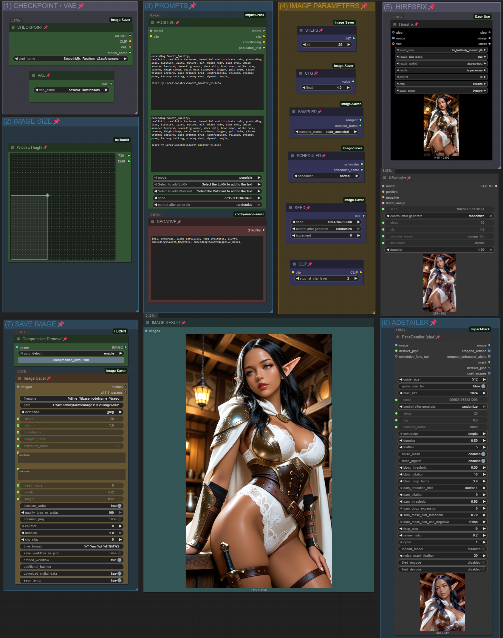HiresFix と Adetailer を含む非常にシンプルなワークフローです。よりカジュアルなユーザーを想定して作成されました。