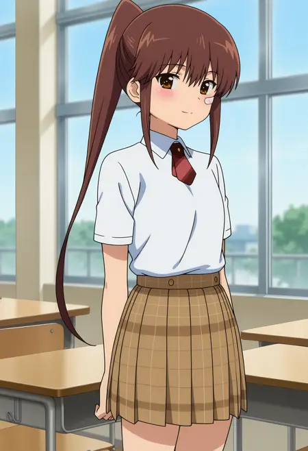 | 训练词汇 | high ponytail, long hair, brown hair, brown eyes, bandaid on cheek已复制! short twintails, brown hair, brown eyes, bandaid on cheek已复制! straight hair, hair between eyes, long hair, brown hair, brown eyes已复制! brown jacket, collared shirt, white shirt, short necktie, striped necktie, red necktie, long sleeves, pleated skirt, plaid skirt, dark brown skirt已复制! collared shirt, white shirt, short necktie, striped necktie, red necktie, short sleeves, pleated skirt, plaid skirt, light brown skirt已复制! black tank top, overalls, green backpack, red belt, grey pants已复制! bare shoulders, collarbone, sleeveless shirt, ribbed shirt, green shirt, bike shorts, black shorts已复制! black one-piece swimsuit, green one-piece swimsuit已复制! purple shirt, naked shirt, long shirt已复制! babydoll, frilled bra, purple bra, small breasts, see-through已复制! |