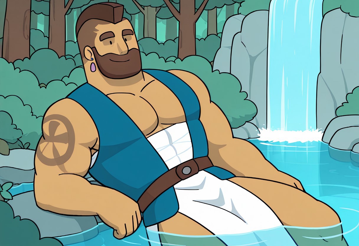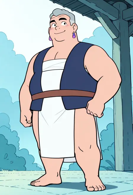 Recommended prompts: white pelvic curtain, white sarashi, white loincloth, brown belt, blue vest