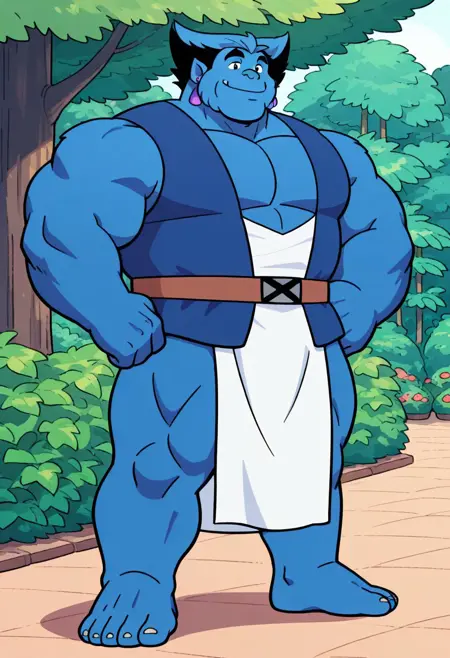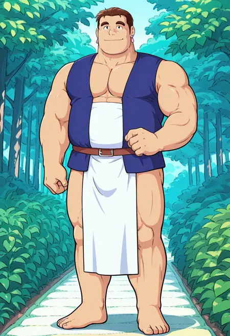 Recommended prompts: white pelvic curtain, white sarashi, white loincloth, brown belt, blue vest