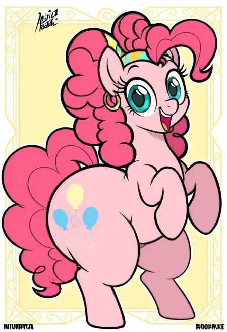 | 训练词汇 | Latina Pie, Rosita Pie, Latina Pinkie Pie,Latina-inspired pony已复制! cheerful, vibrant, peachy-pink fur, curly pink mane, voluminous hair, playful hairstyle, turquoise eyes, golden hoop earrings, decorative headband, yellow spiral cutie mark, blue and yellow geometric patterns, traditional motifs, colorful, festive, bright colors, joyful expression已复制! |