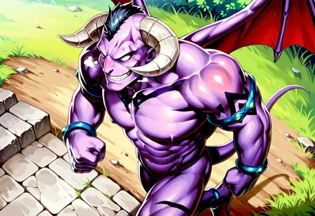 彼の肌は光沢があるため、光源などをネガティブプロンプトで調整するとよいでしょう。(実際の肌の質感が爬虫類のように光を反射するためです。)