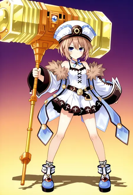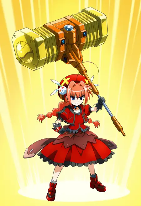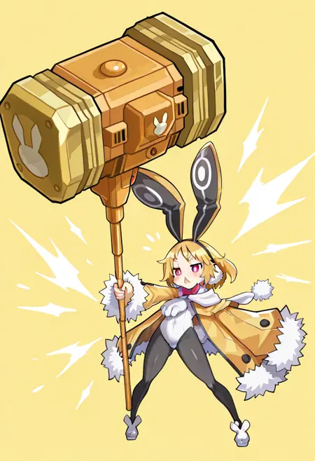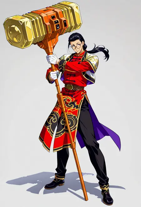 The Goldion Hammer from King of Braves Gaogaigar. The full body golden glow is not included, just the hammer. (didn't want to risk it with the pixai trainer)