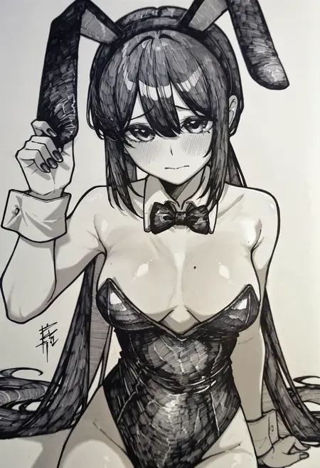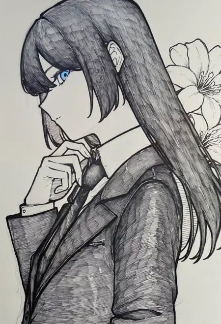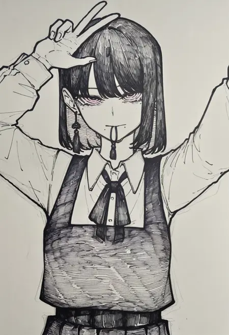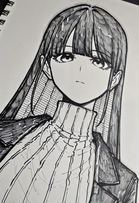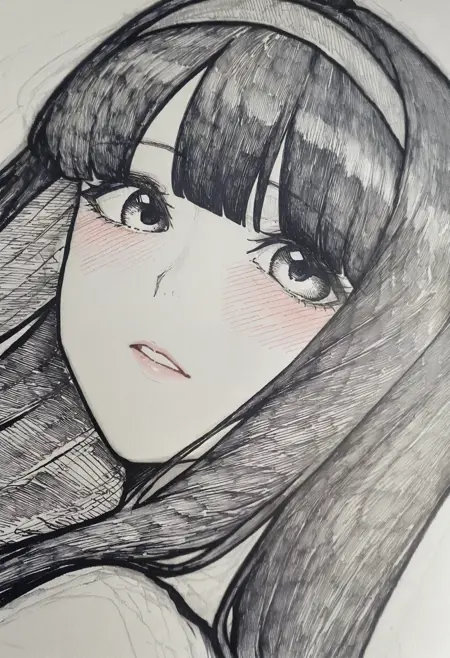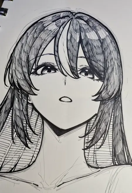 Rl9SV, monochrome, greyscale, traditional media, sketch, 1girl, solo, hatching \(texture\),