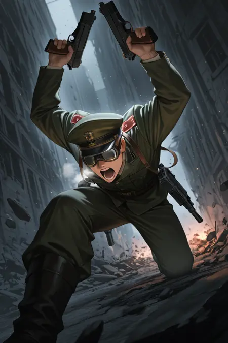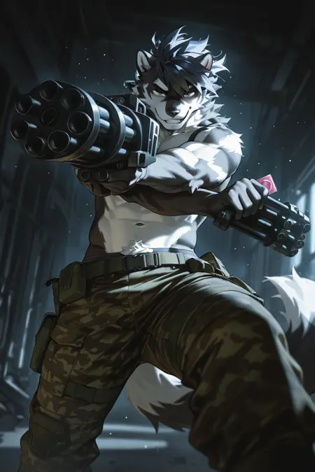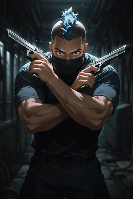 当希望双持不同武器时,请添加 "holding 第一个武器,holding 第二个武器"