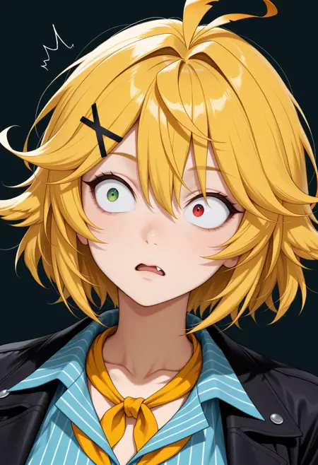 D0ki, 緑の目, 金髪, 短髪, 立ち髪, x 髪の飾り