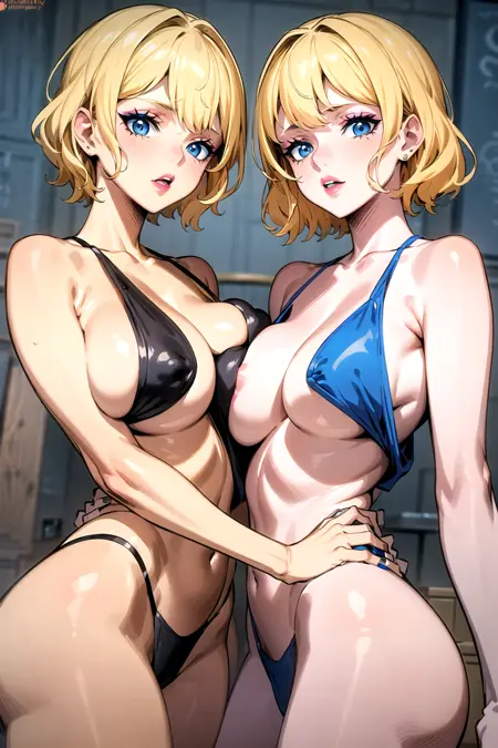 我的想法是让多个女孩(Stussys)出现在一些富有暗示性的场景中,因此我几乎没用任何穿衣服的图片。结果……如果你不向AI要求穿衣服,女孩们就会光着身子出现。(PS:如果你使用非Hentai模型,这种情况几乎不会发生,这是我的失误,抱歉,哈哈……)