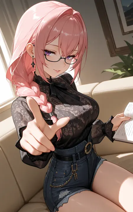 头:tsukishiro yanagi\(zenless zone zero\),1girl,solo,long hair,pink hair,pink eyes,glasses,