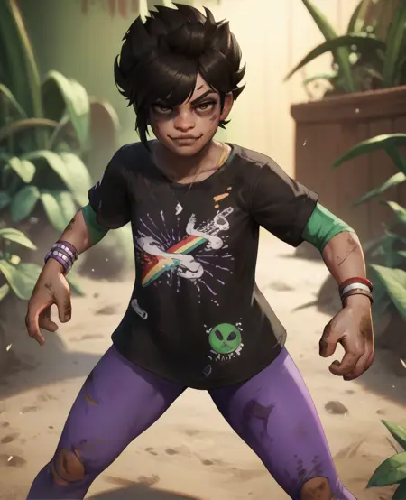 willow, black hair, brown eyes, short or medium hair,