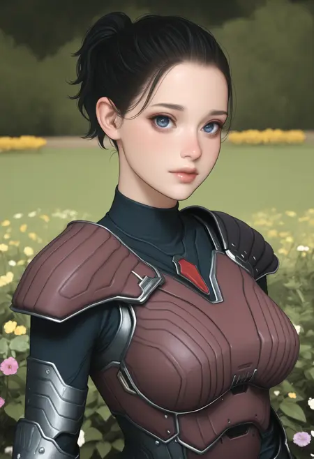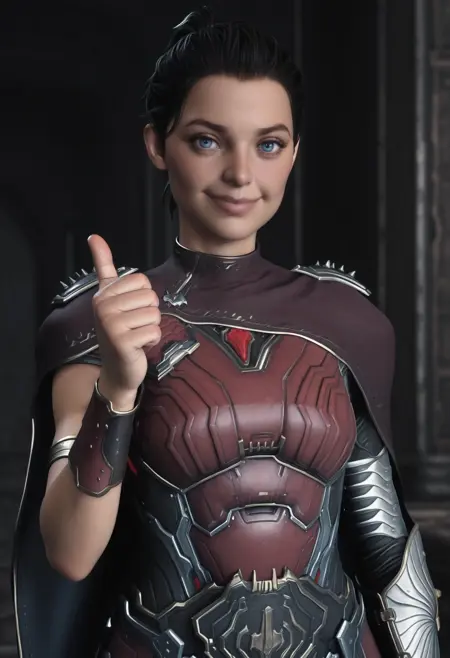 th1ilf, 1girl, 黑发, 短发, 短马尾, 蓝眼睛, 护甲, 斗篷, 单只手套, 护腕, 靴子
