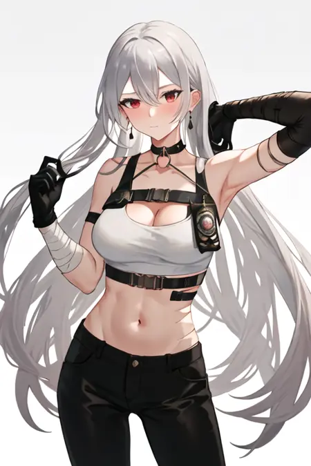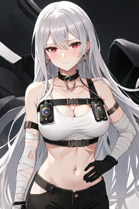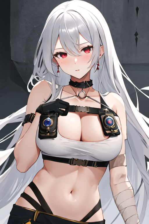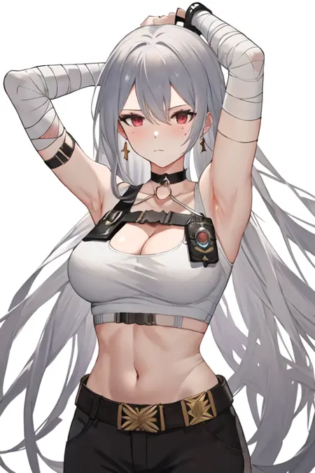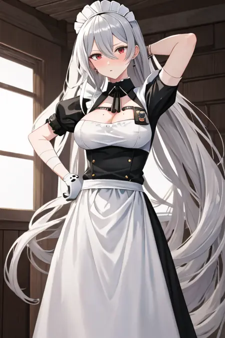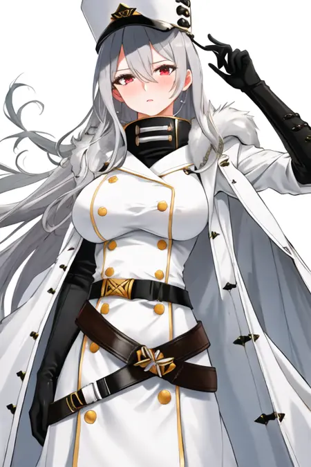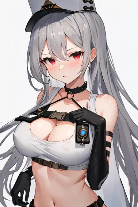 触发词为 sovetskaya_rossiya_azurlane,推荐标签为:best quality, masterpiece, highres, solo, {sovetskaya_rossiya_azurlane:1.15}, long_hair, hair_between_eyes, red_eyes, breasts, large_breasts, mole, white_hair, mole_under_eye, bangs, blush, grey_hair, very_long_hair。