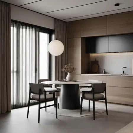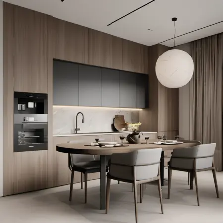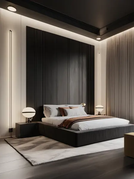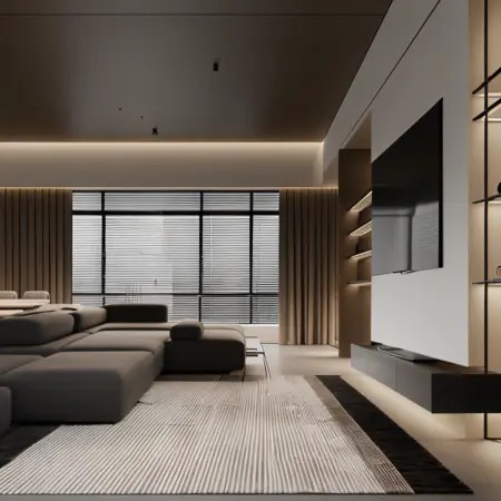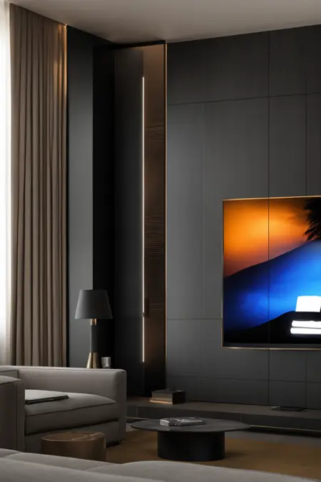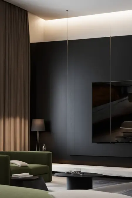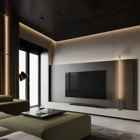 WD (trigger word), livingroom, open kitchen, bedroom, Island platform, TV background wall, Magnetic track light, bedside background, etc. The prompts do not specify a particular color or material