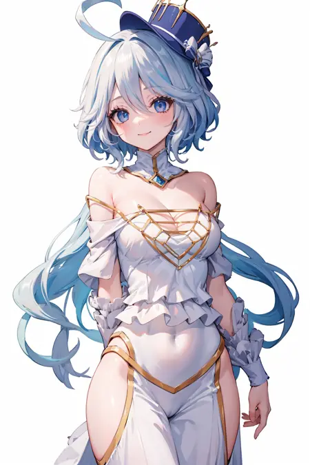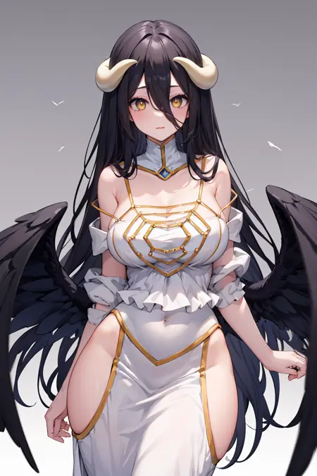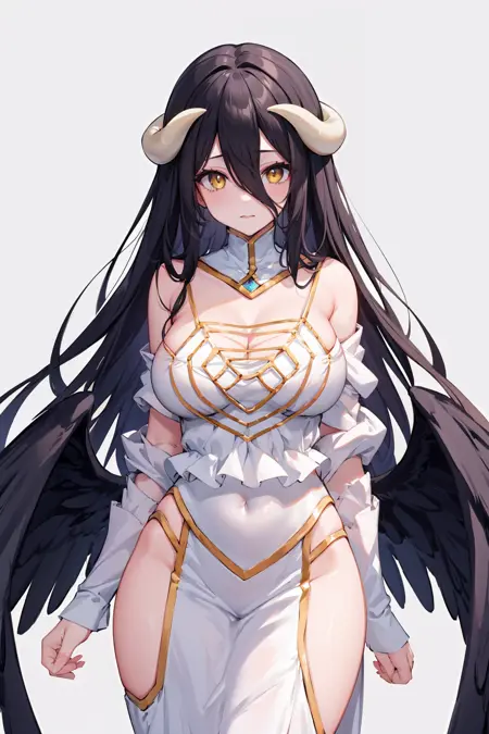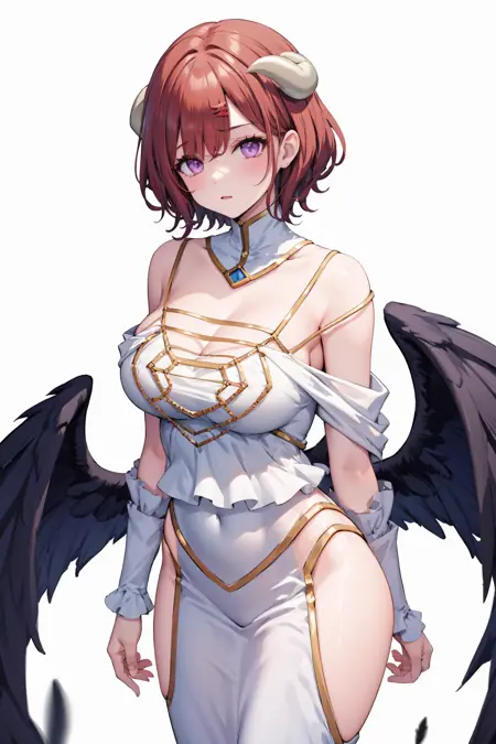 また、アーベルのキャラクターLoRAとしても使用できます: demon horns, white horns, black wings, feathered wings, black hair, very long hair, yellow eyes, slit pupils, hair between eyes, long bangs, ahoge。金の鎖が気にならない場合(これは衣装LoRAであるため)、衣装を変更する際の推奨重みは約0.75です。