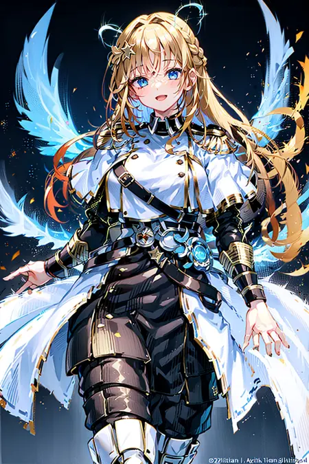 蓝眼睛,编发,金色头发,非常长的头发,星星发饰,发丝内收,火焰之翼,