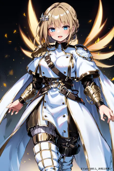 单臂护甲,盔甲,军装,白色斗篷,白色短披风,腰带,裙子,肩章,