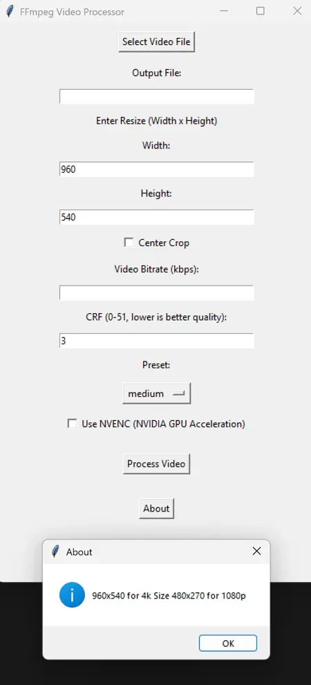 A Simple GUI for passing command lines to FFMPEG (Included)