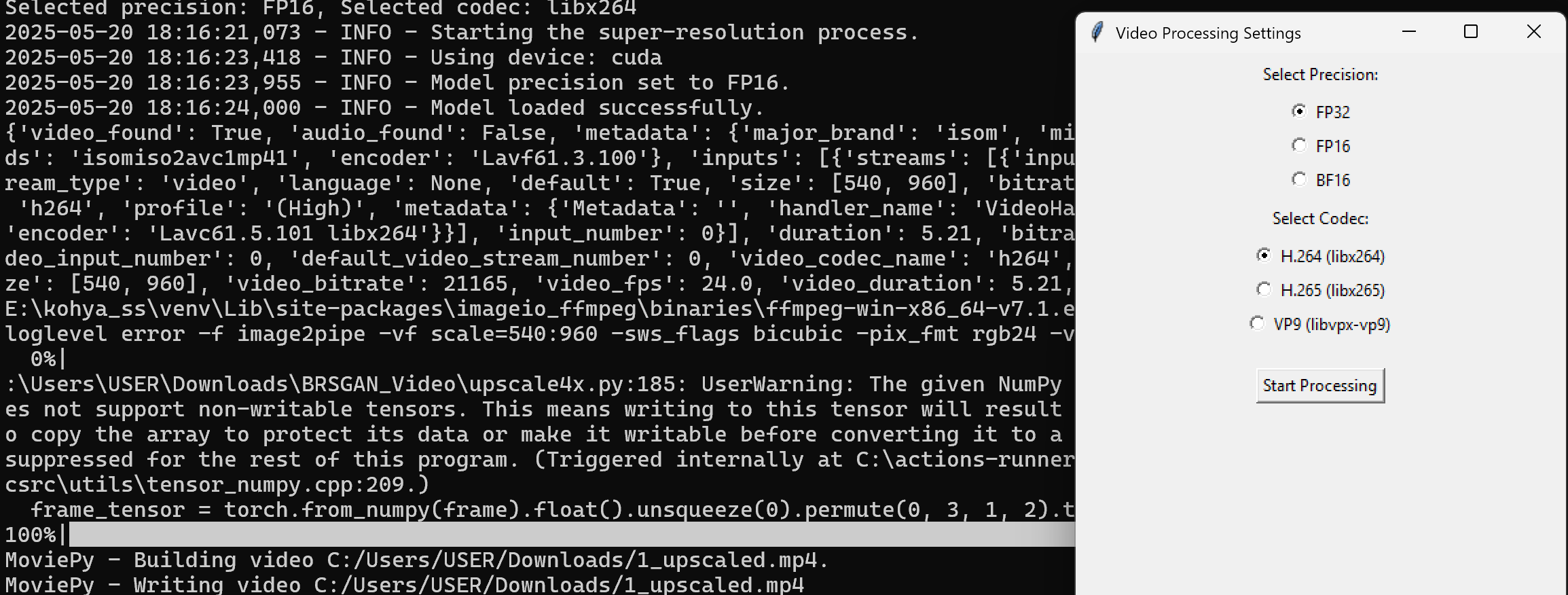A GUI for Processing all video frames with BRSGAN4x