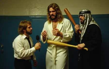 我特意避免训练任何摔角手的相似形象,几乎所有训练图像均来自早期LoRA的输出结果,但它在许多情况下仍能较好地理解某些概念——例如,它知道Von Erich家族成员拥有浓密蓬松的头发(除Kevin外均已离世,我认为Kevin可能是地球上最伟大的榜样),Bill Mercer应呈现为完全不像真实Bill Mercer的评论员(已故),Skandor Akbar是酋长等。(趣味事实:在Flux底层深处,蕴藏着海量的职业摔角知识——我在训练中曾见过一些奇特内容浮现。它特别钟爱Miro/Rusev,但你无法通过名字直接召唤他;只有在大量谈论摔角时,尤其是在测试LoRA时,它才会自然出现。)