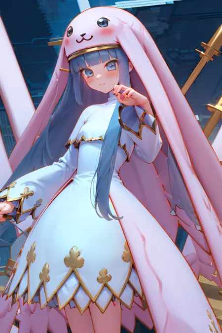 흰 토끼 모양의 수녀 모자를 쓴 수녀 디지몬으로, 언니는 수녀 디지몬 블랙이다. 언니인 블랙과 대조적으로 소극적이며 자주 언니 뒤에 숨는다. 언니와 함께 하크 디지몬을 돌보며 수호자의 역할도 맡는다. 고집쟁이 디지몬의 의뢰를 성실히 수행해 하크 디지몬의 훈련을 돕지만, 언니의 폭력적인 행동을 자주 두려워한다. 고집쟁이 디지몬이 자신과 언니의 목숨을 구해준 은혜에 보답하기 위해, 하크 디지몬을 감독하는 임무에 전념한다.
