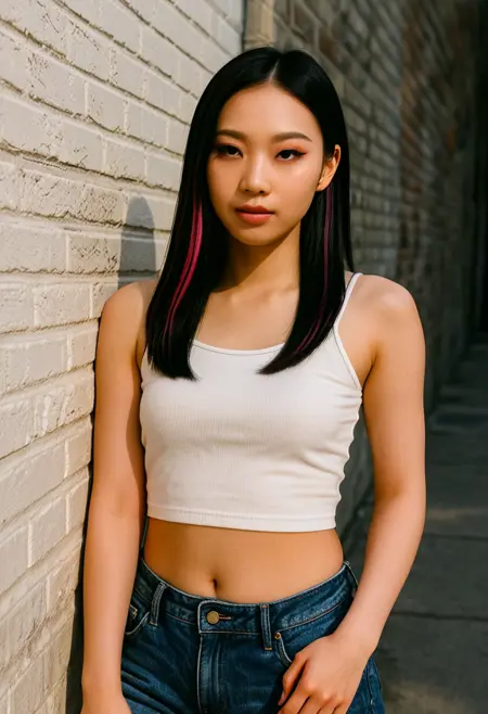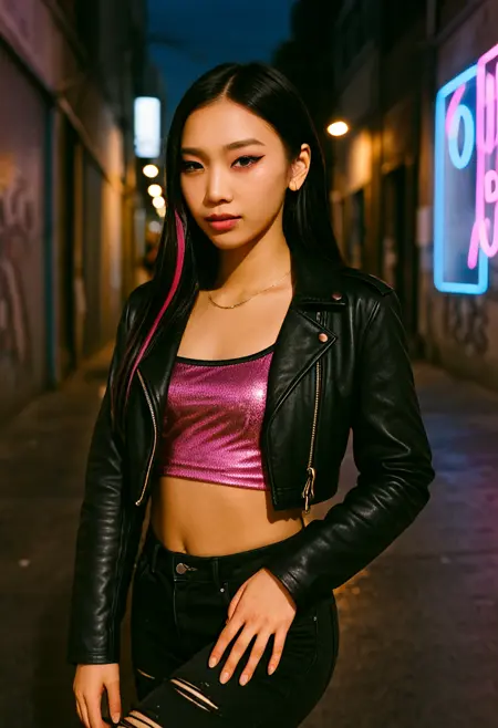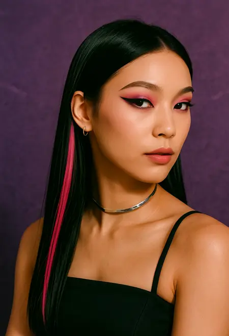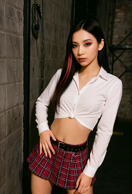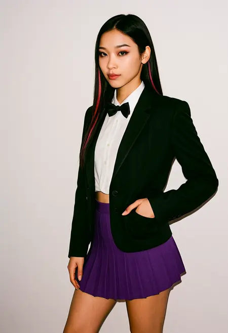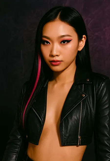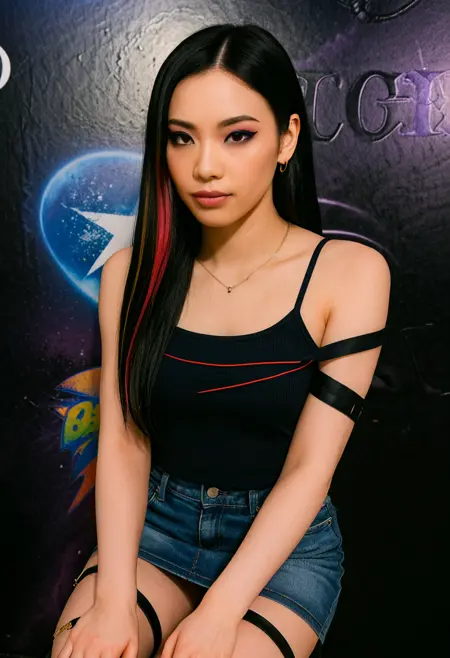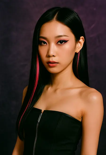专业提示: 闪光灯、粗粝背景与低保真滤镜能完美呈现她的Y2K另类面;而华丽摇滚Violet则需舞台灯光、烟雾与力量姿态。始终保留她的项圈与标志性妆容,以获得最佳效果。