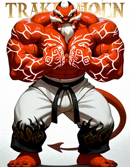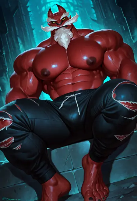 经典特征:黄色眼白、红色皮肤、白色胡须、白色眉毛、白色胡子、绿色眼睛、角