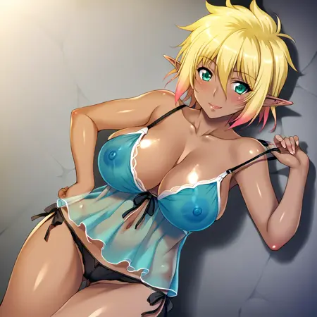 - 트리거: Elda, 1girl, 큰 가슴, 검은 피부, 검은 피부 여자, 금발 머리, 뾰족한 귀, 팔꿈치 장갑, 파란 허벅지 양말, 배꼽, 녹색 눈, 털 장식, 털 칼라, 검은 장갑, 검은 팬티, 엘프, 다색 머리, 속옷, 비키니, 눈 사이 머리, 그라데이션 머리, 드러난 어깨, 로우레그, 짧은 머리, 수영복, 갑옷, 젖꼭지 커버, 언더보브, 겐틀릿, 사이 티 팬티