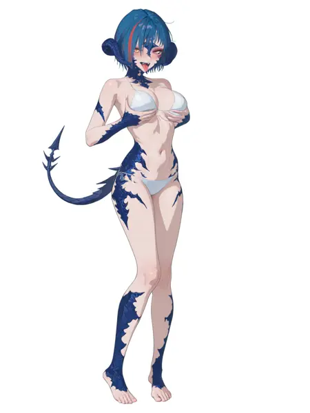 私はFinal Fantasy XIVのオーラ女性キャラクター(フェイス4)を基にこのLoRAモデルを作成しました。彼女はドラゴンを連想させる短髪で、赤く染めた先端と印象的なオレンジレッドの目を持っています。