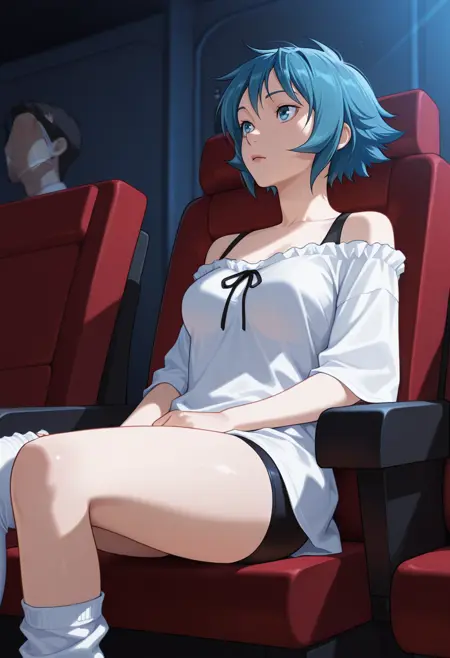 sonia_cnr, 1girl, blue hair, short hair, blue eyes,medium breasts,