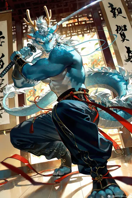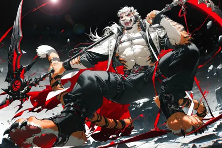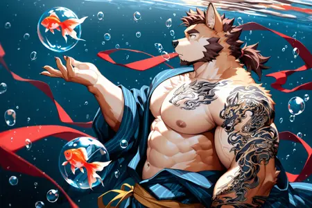 建议配合以下提示词使用:male focus, furry, furry male, bara, muscular male
