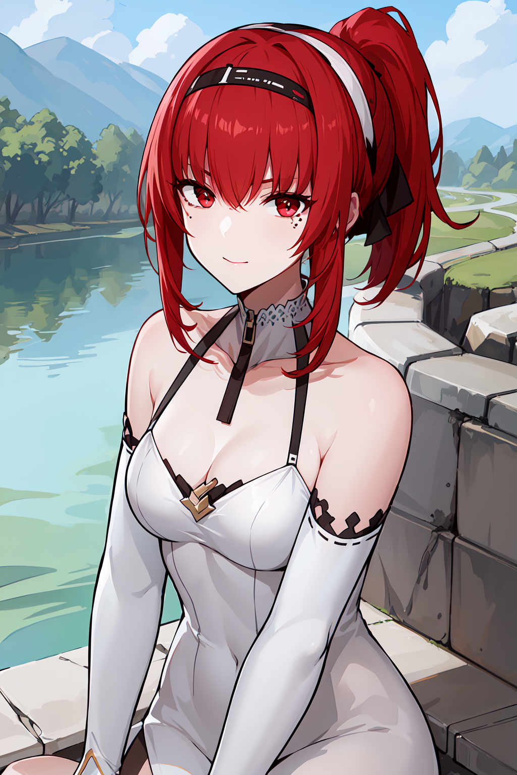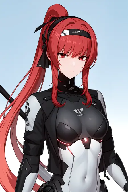 要调用该角色,请输入:“lora:VeraPGRgarnetv1:strengthVerapgr_garnet, 马尾辫, 黑白夹克, 防护手套, 连裤袜, 高跟靴, 机械刀鞘, 发带,”。