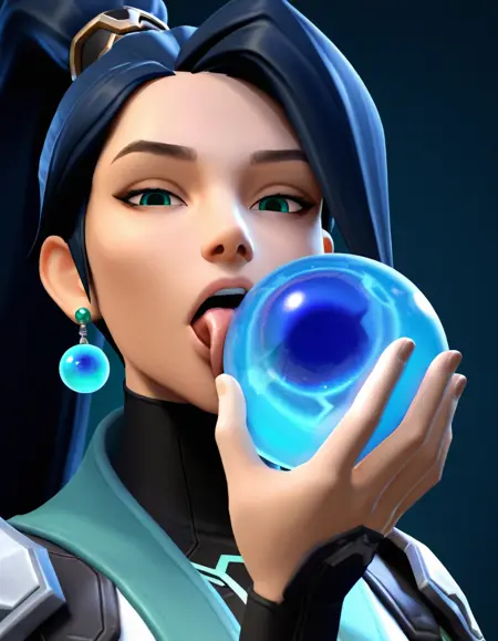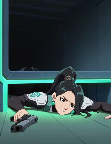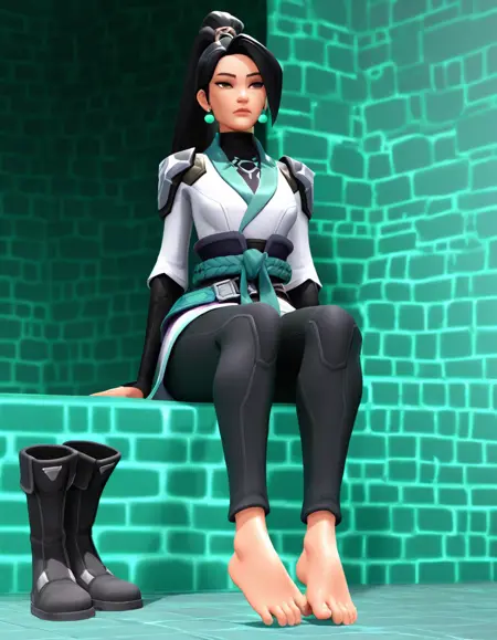 标准外观提示词: sage, valorant, 杏眼,细长眼睛,长发,高马尾,侧刘海,翡翠耳环,肩垫